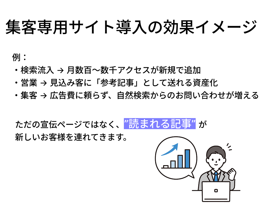 本業のホームページに加えて“集客専用ページ”を作りませんか?