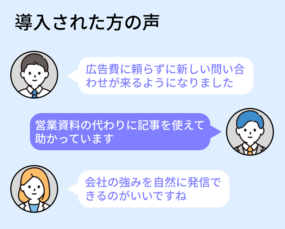 商品やサービスの強みを記事として発信し、信頼を築けます。